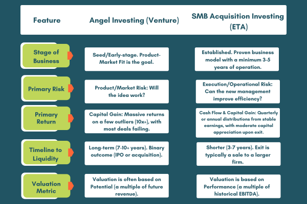For those familiar with early-stage venture, the SMB acquisition model presents a completely different risk, return, and time-horizon profile.